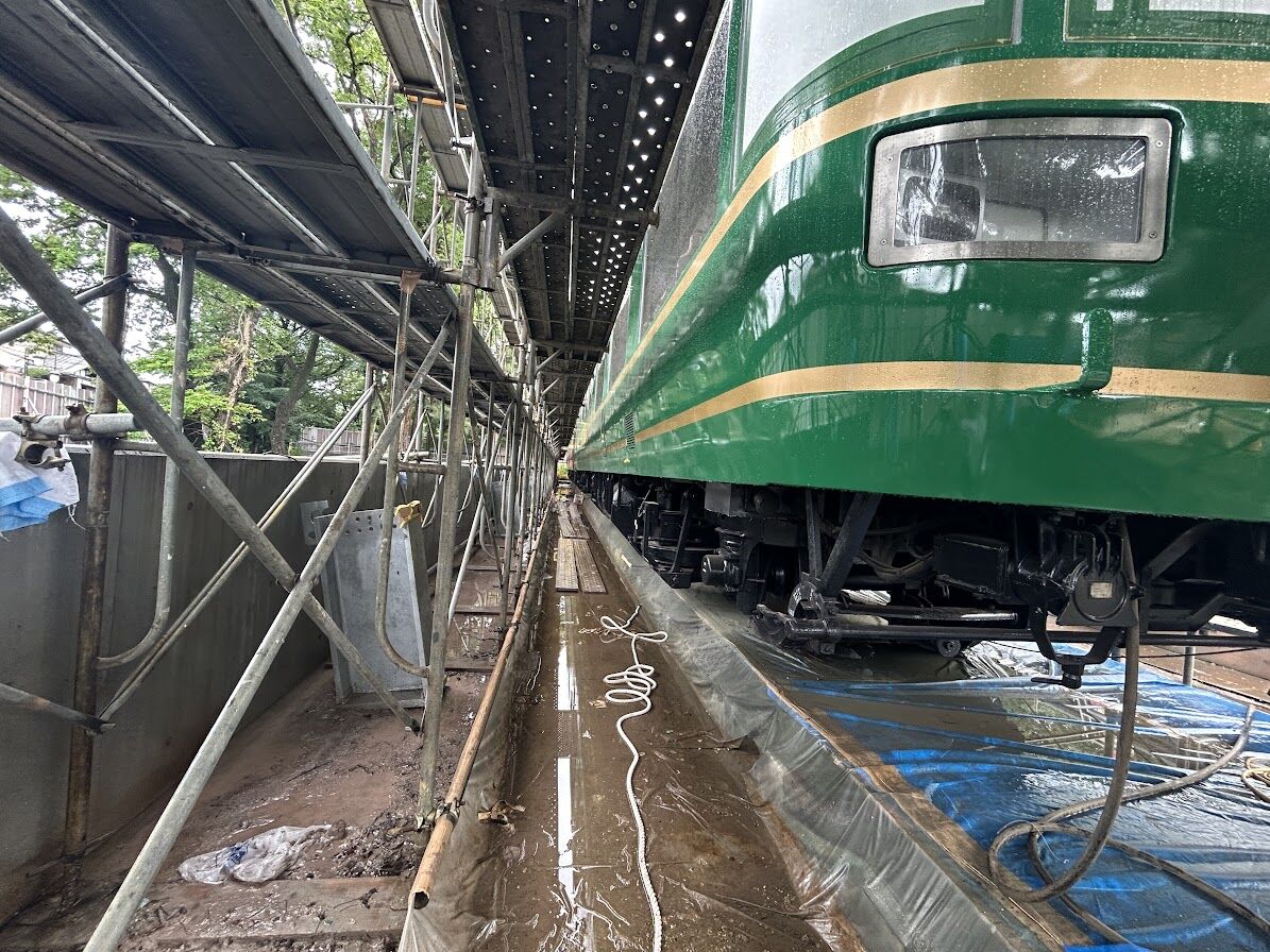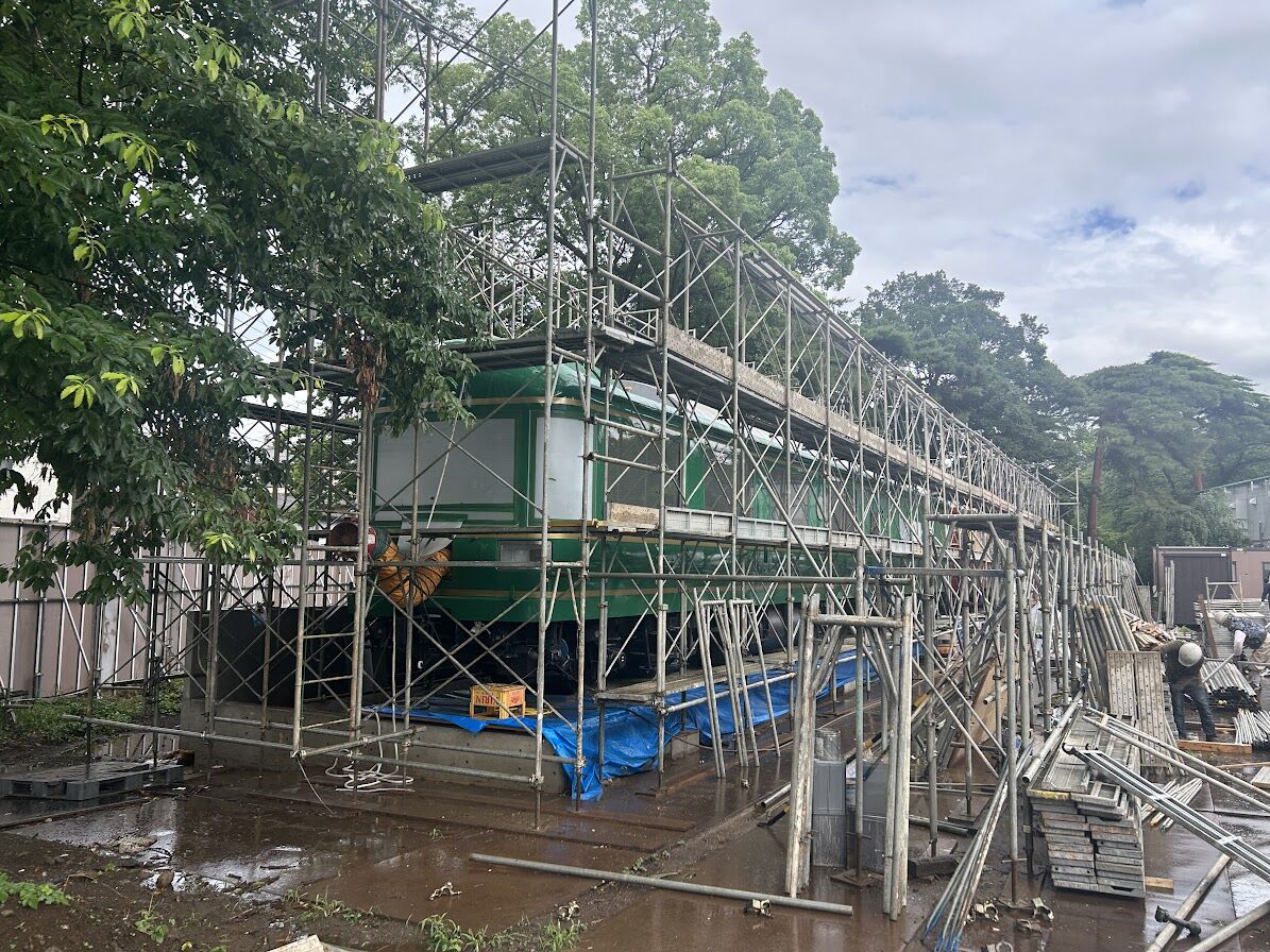 これは“夢空間”の様子です。すでに列車そのものの外観修復は終わっており、内部の修復中でした。またこの列車の置かれるプラットホームの建設も進んでいました。