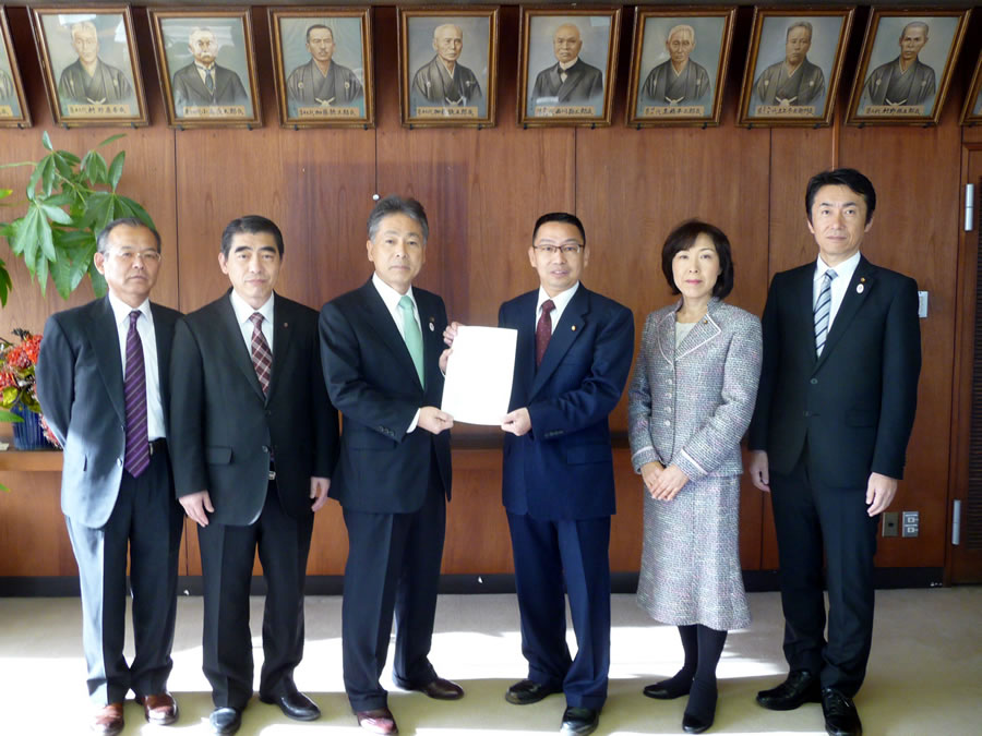 要望書は、「健康といのちを守るまちづくり」として健康対策を、「子どもたちが輝くまちづくり」として子育て対策を、「安心・安全で潤いのあるまちづり」として防災・交通安全対策を、「地域のまちづくり」として道路改修対策を、それぞれ具体的な施策として、列記したものです。
