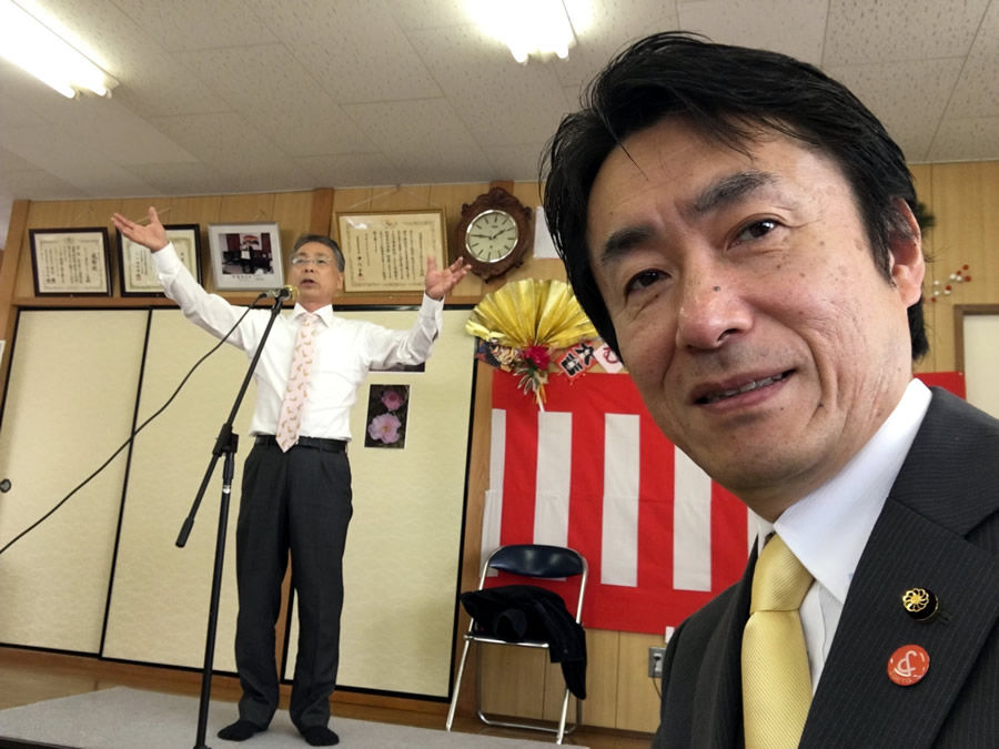 1/24(日)、毎年恒例となっています、野塩団地の老人会・むらさき会の新年会にお邪魔しました。毎年毎年、にぎやかに開催されるむらさき会の催しは私の地元だけあって、とてもリラックスして参加します。また、来賓も大勢いらっしゃる会で、市長をはじめ、市老連の小野会長、長生会の吉川会長もいらっしゃっていました。写真は、市老連の小野会長と役員の石橋さんです。