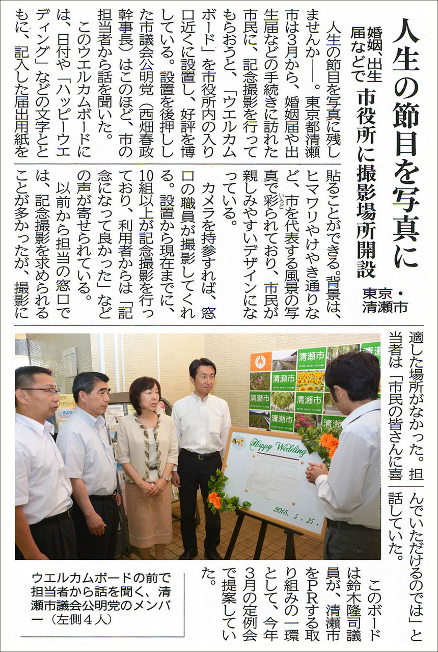 ¿ÍÀ¸¤ÎÀáÌܤò¼Ì¿¿¤Ë»Ä¤·¤Þ¤»¤ó¤«¡¼¡£ÅìµþÅÔÀ¶À¥»Ô¤Ï£³·î¤«¤é¡¢º§°ùÆÏ¤ä½ÐÀ¸ÆÏ¤Ê¤É¤Î¼ê³¤¤Ëˬ¤ì¤¿»Ô̱¤Ë¡¢µÇ°»£±Æ¤ò¹Ô¤Ã¤Æ¤â¤é¤ª¤¦¤È¡¢¡Ö¥¦¥¨¥ë¥«¥à¥Ü¡¼¥É¡×¤ò»ÔÌò½êÆâ¤ÎÆþ¤ê¸ý¶á¤¯¤ËÀßÃÖ¤·¡¢¹¥É¾¤òÇ¤Æ¤¤¤ë¡£ÀßÃÖ¤ò¸å²¡¤·¤·¤¿»ÔµÄ²ñ¸øÌÀÅÞ¡ÊÀ¾Èª½ÕÀ¯´´»öĹ¡Ë¤Ï¤³¤Î¤Û¤É¡¢»Ô¤ÎôÅö¼Ô¤«¤éÏäòʹ¤¤¤¿¡£
