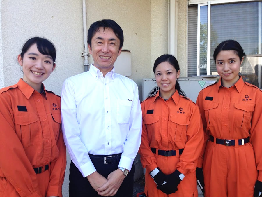 まさに汗と涙で栄冠を勝ち取った職員の方々と、記念撮影をして頂きました。みなさん、それぞれ市役所の中では他部署で勤務されている若手のホープです。今後のご活躍を期待しています!!(※混合チームの男性職員だけ撮影漏れしていました。申し訳ありません)