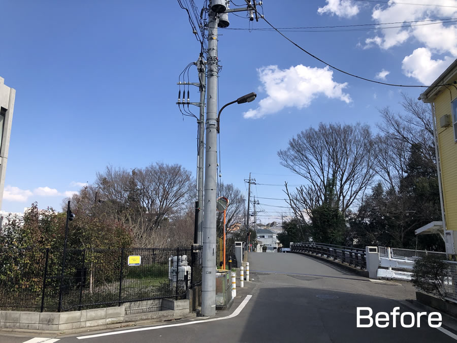 野塩5丁目地域にお住まいの方より、自宅前の道が暗いとのご相談を頂きました。かつては、そこには外灯柱が立っていたが、建て替え整備が進む中で撤去され、そのままだとのことでした。