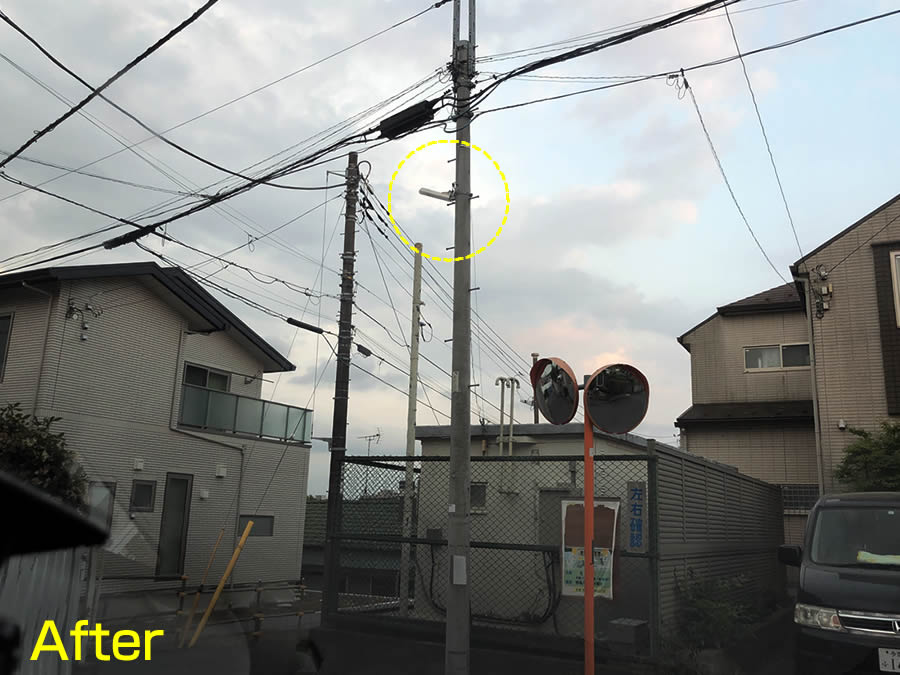 後日、こちらのお願いした通りの形で、電柱に付けて頂きました。一安心です。いつも素早いご対応を頂き、担当課には感謝しています。