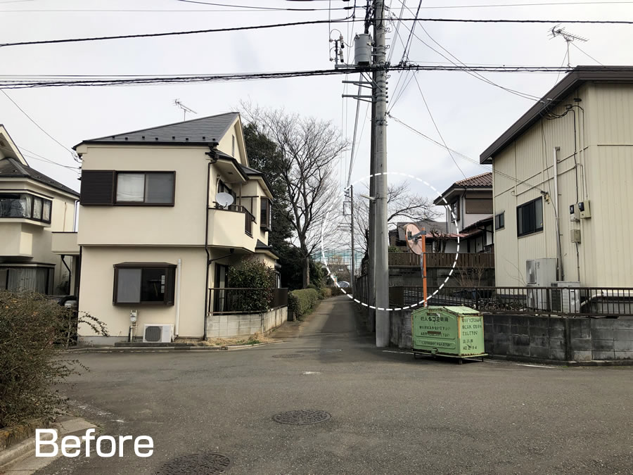 この件は、この住宅自治会の長年の懸案で、これまでも市や都に毎年掛け合ってきたとのことでした。さっそく市にご相談すると、やはりこの件は承知されていましたが、そこが都道であることやその他諸々障害があり、今日まで設置できないでいたそうです。
