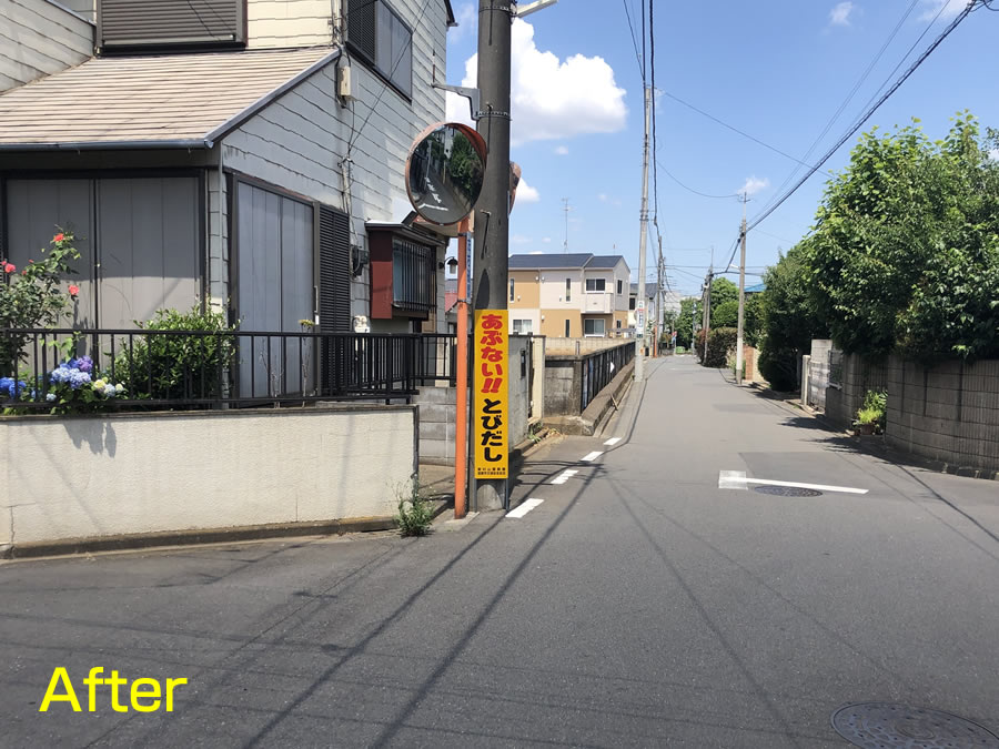 また用をなしていなかったカーブミラーも、電柱に隠れないちゃんと安全が確認できる位置に設置し直して頂きました。