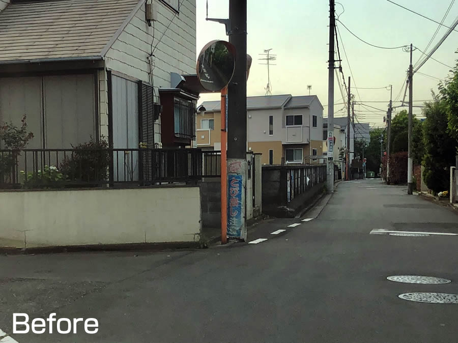 ●見えにくい都道への路地にカーブミラーを設置して頂きました。【松山一丁目】