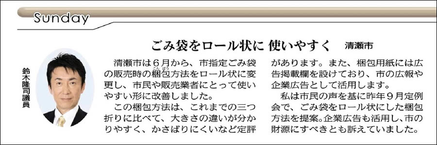 µî¤ë7/26(Æü)ÉÕ¤±¤Î¸øÌÀ¿·Ê¹4ÌÌÅìµþ»³ÍüÈǤˡ¢¡Ö¤´¤ßÂÞ¤ò¥í¡¼¥ë¾õ¤Ë»È¤¤¤ä¤¹¤¯¡×¤Îµ»ö¤¬·ÇºÜ¤µ¤ì¤Þ¤·¤¿¡£