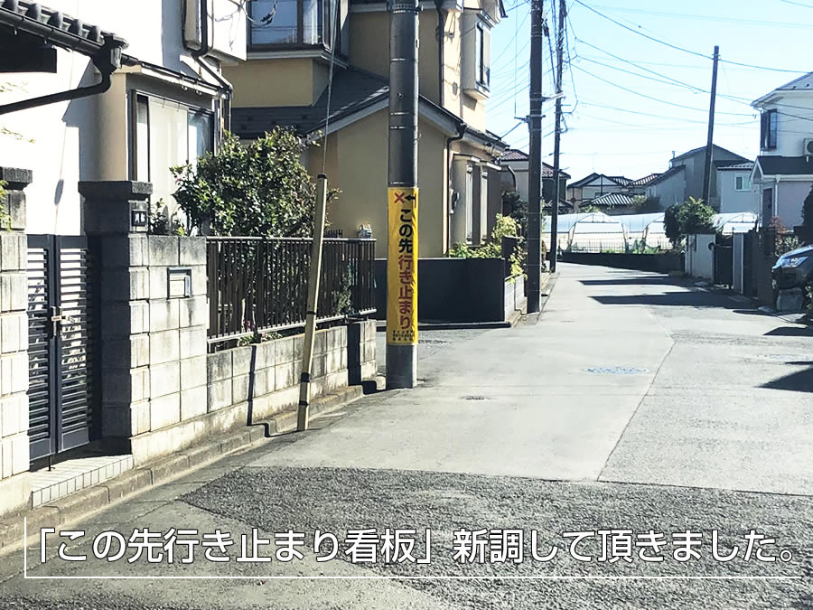 ●「この先行き止まり」看板新調して頂きました。【中里3丁目】