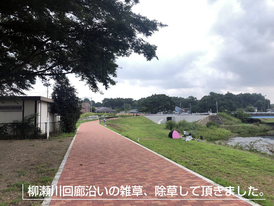 ●柳瀬川沿いの雑草、除草して頂きました。【中里4丁目】