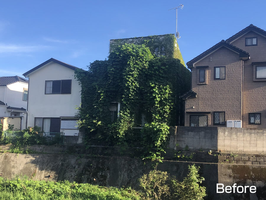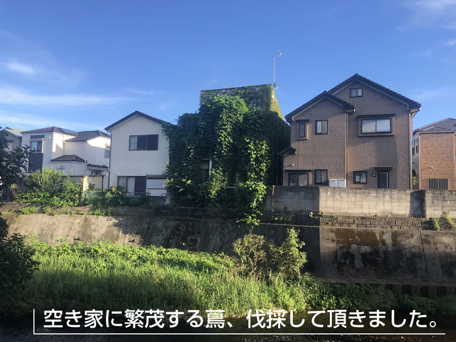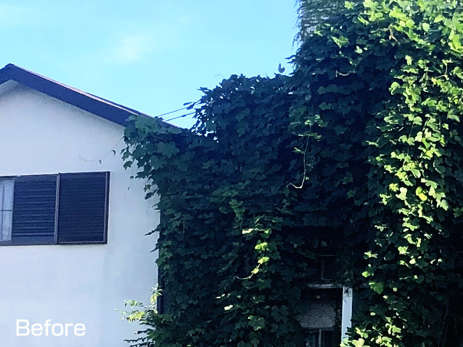 ●空き家に繁茂する蔦、除去して頂きました。【野塩2丁目】