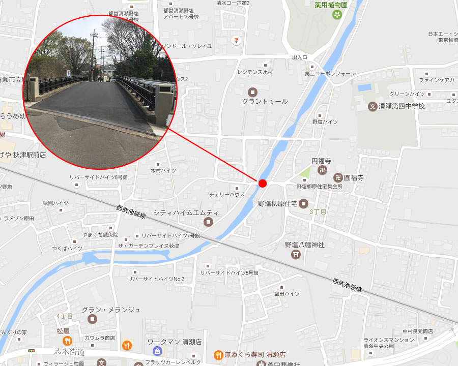 だいぶ以前より、野塩一丁目にある柳原橋の老朽化を多くの方よりご指摘頂いていました。清瀬市は“清い瀬せらぎ”との名の通り、柳瀬川と空堀川、そして野火止用水と清流のある街です。とは言え、これらの川は、柳瀬川は市の北端、空堀川は市の西北とある場所が偏(かたよ)っています。ということは、橋のある場所も、市の西北である野塩・梅園地域が多いのです。