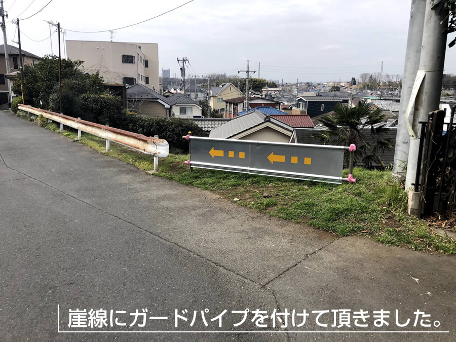 ●危険な崖線にガードパイプを付けて頂きました。【野塩1丁目】
