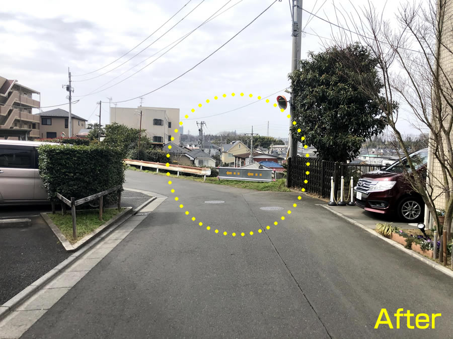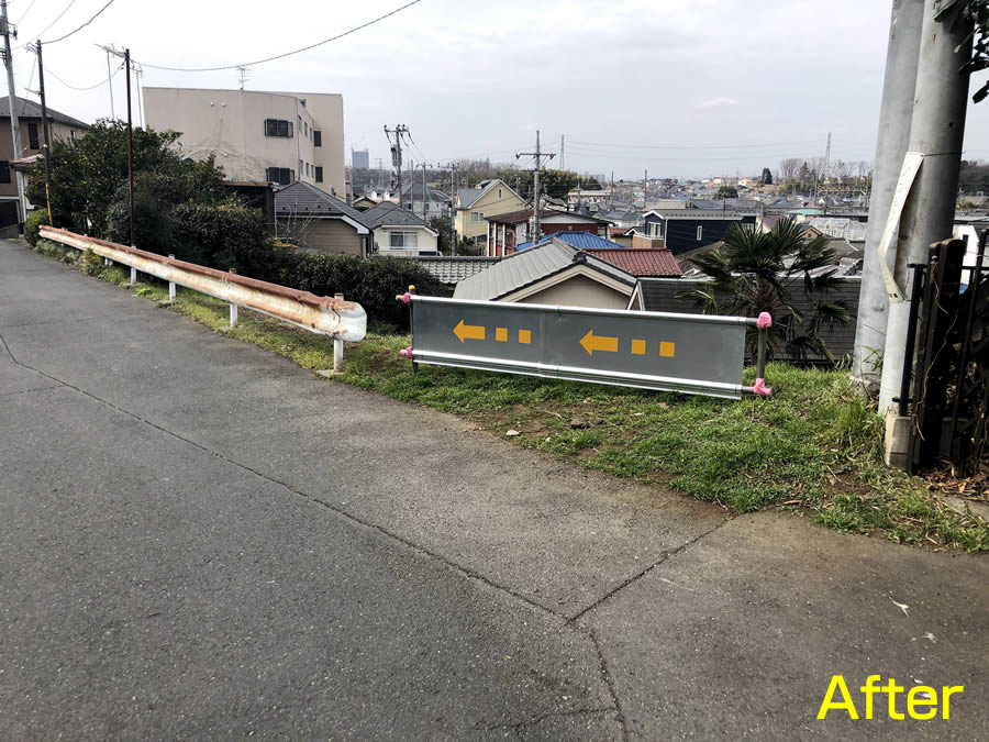 矢も楯もたまらず、担当課にご相談しました。すると、ちゃんとしたガードレールはまとまった予算を付けないと設置できないので、とりあえずガードパイプを注意喚起の意味も込め、設置して頂きました。ご相談してから、2週間とたっていないと思います。ここら辺が我が市の凄いところです。いやいや、本当ですよ。別件で、所沢市にカーブミラーの設置をお願いしたら、何百件待ちとかで一顧だにされませんでした。